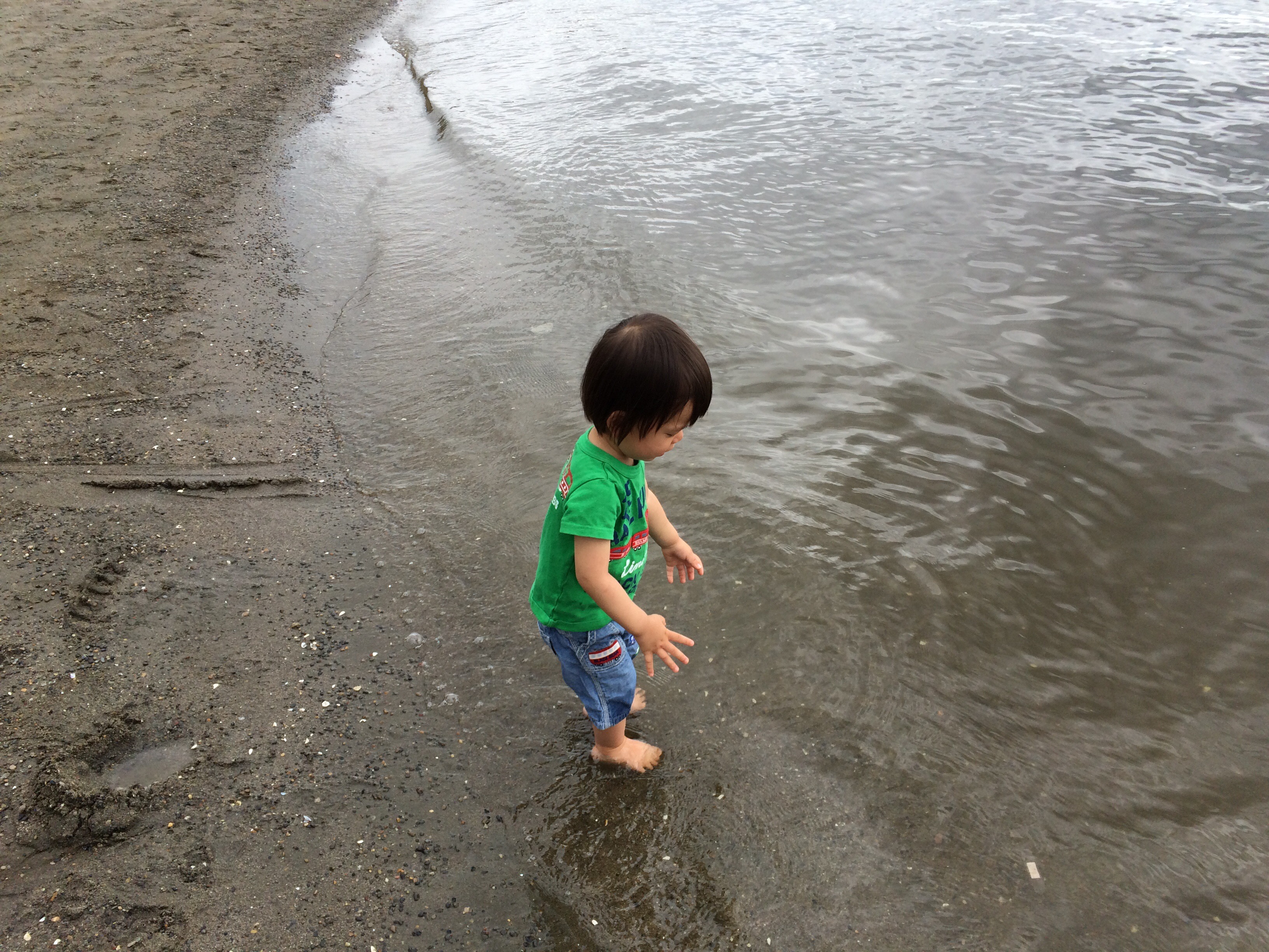 今日はお台場のビーチに遊びに来ました。子供と一緒になって裸足になって遊びました。